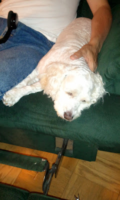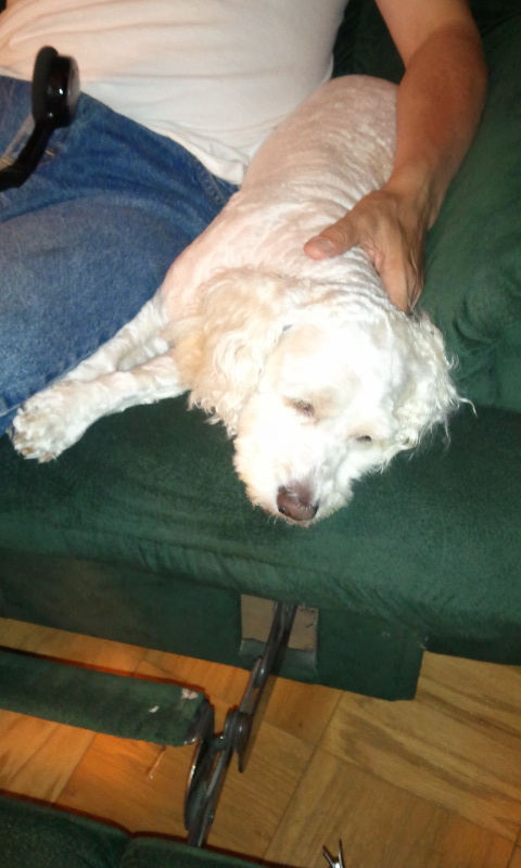 "She's had that before," I said. "I think it's just because she was cut so close at the groomers." Ginny had to shave her because she'd become matted and a real mess. We had to wait so long and I had snipped at her in the middle of her being sick.