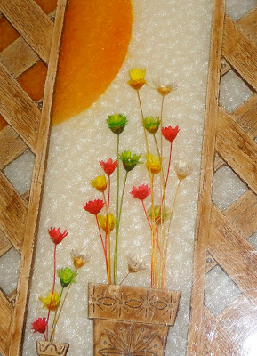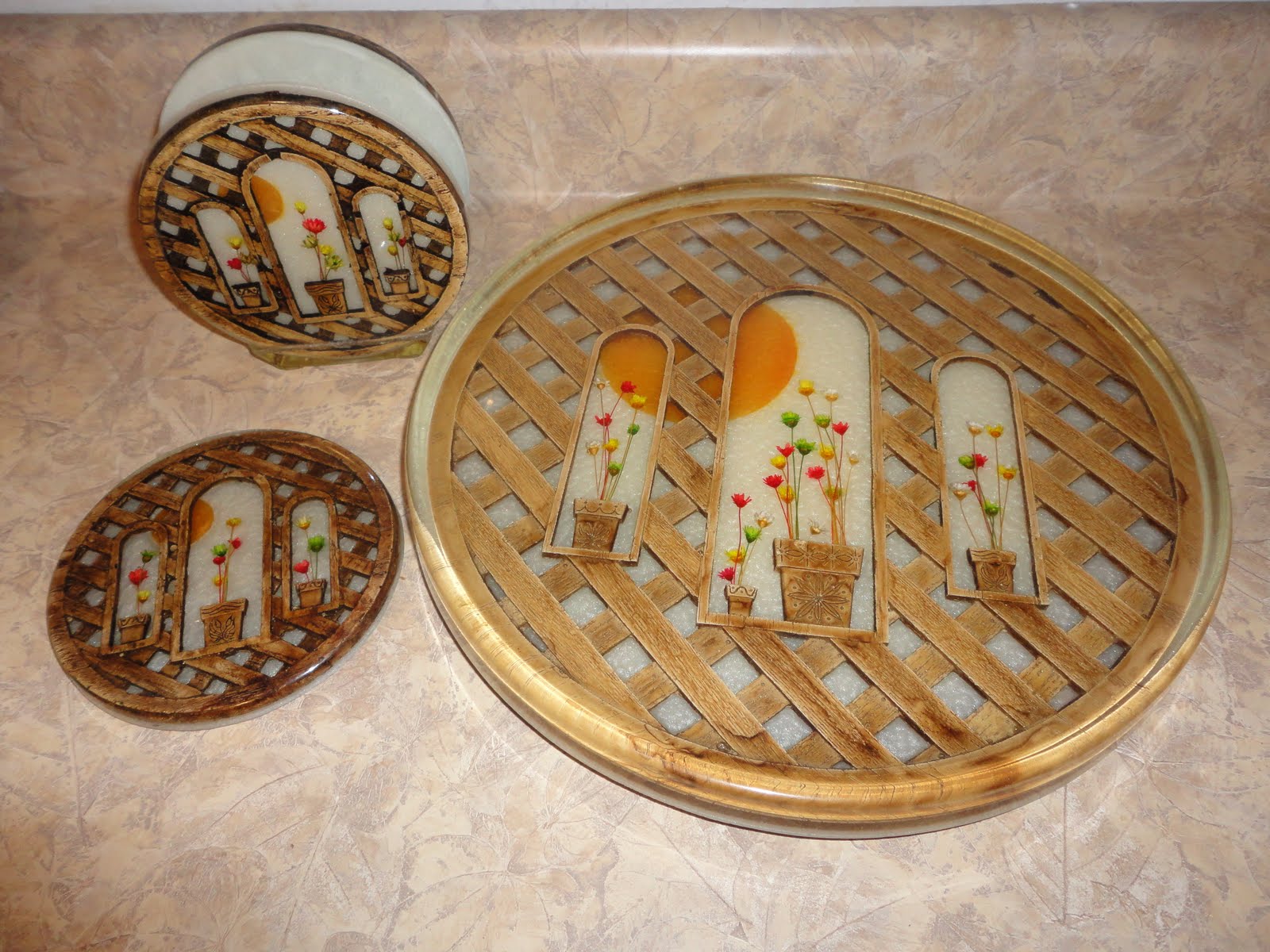 I loved this lazy susan set designed with dried flowers, trivet and napkin holder.